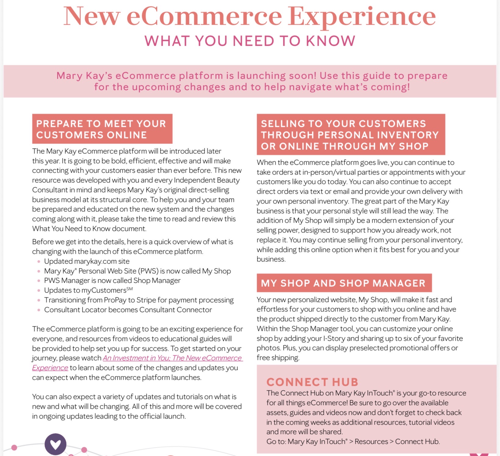 Mary Kay will be launching a new shopping experience. Currently, consultants had the option to have a Personal Website. Consultants with orders could choose to fulfill them through the CDS system (where the company sends the product to the customer) or by using their personal inventory. The new experience will be called My Shop. It will only allow orders to be fulfilled by CDS. Consultants won’t be able to fulfill online orders using their inventory.