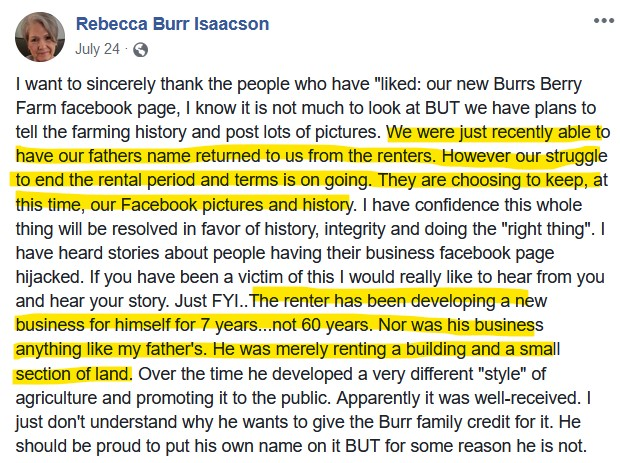 That didn’t stop the Wiegandts from making the false claim that their farm had been in operation since 1965, a lie that Dacia continues to tell to this day, even in her retirement announcement. When Dacia was called out by multiple people for falsely using the Burr family story as her own, she claimed that she was referring to the date her grandfather started farming. The Burr family set the record straight: