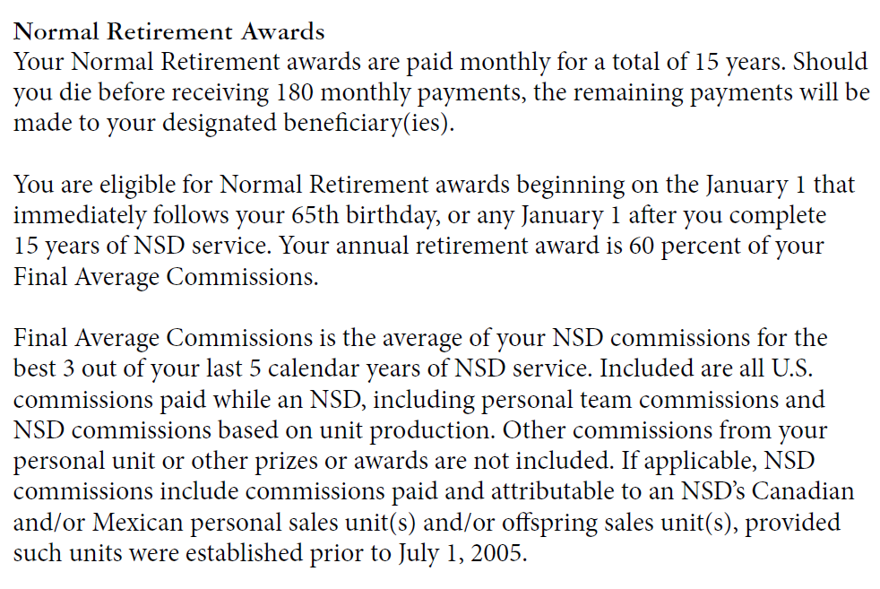 The retirement plan offered to nsds by Mary Kay pays out based on the last 5 years of commissions earned. With incomes dropping, the retirement payout will drop too. Last month, Dacia didn’t even make $15k in commissions, and she’s used to bringing in much more than that. She is making the right choice to quit Mary Kay before her numbers drop even further.