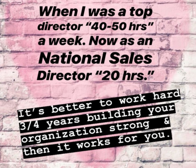 Dacia is featured in this post discussing how to get your recruits to order inventory. Even more important, Dacia loved to make false earning claims to recruits. In this post from 2018, she suggests that part time consultants make between $5,000 to $10,000 a year. She claims average sales directors make between $1,500 to $20,000 a month, with nsds averaging $10,000 to $100,000 a month.