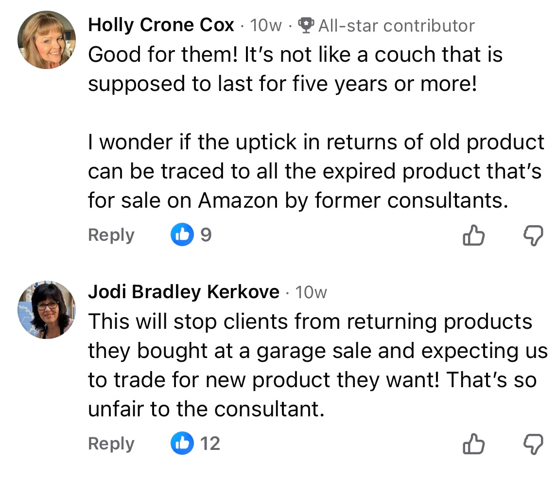 I do find it interesting that recruiters and directors aren’t so worried about any products expiring when they’re loading up new consultants with thousands of dollars of inventory that they can’t sell. They’re just worried when the people who were duped find ways to recover some of their money.