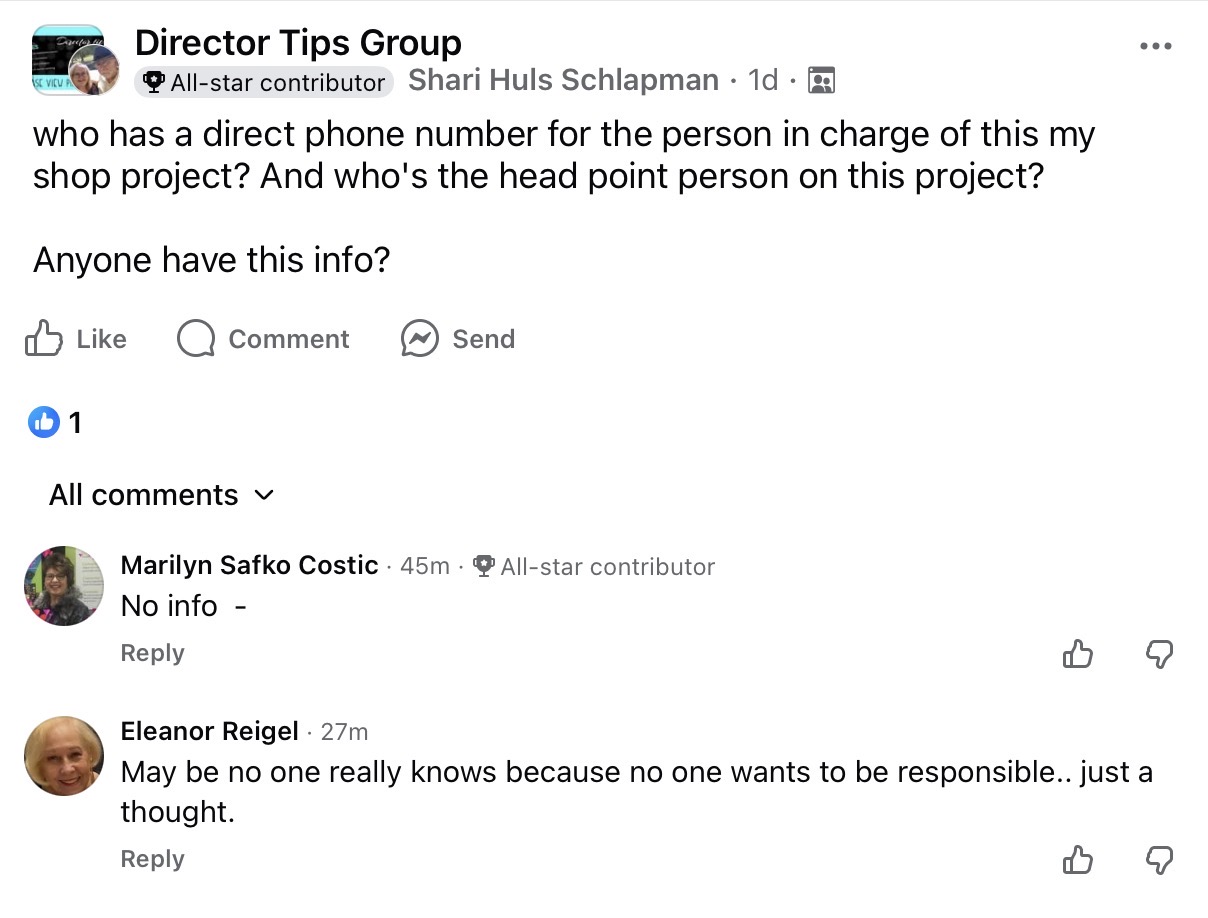 Shari finally had enough and asked anyone if they had a direct phone number for whoever is in charge of My Shop. Sadly, only two consultants responded and neither had the info.