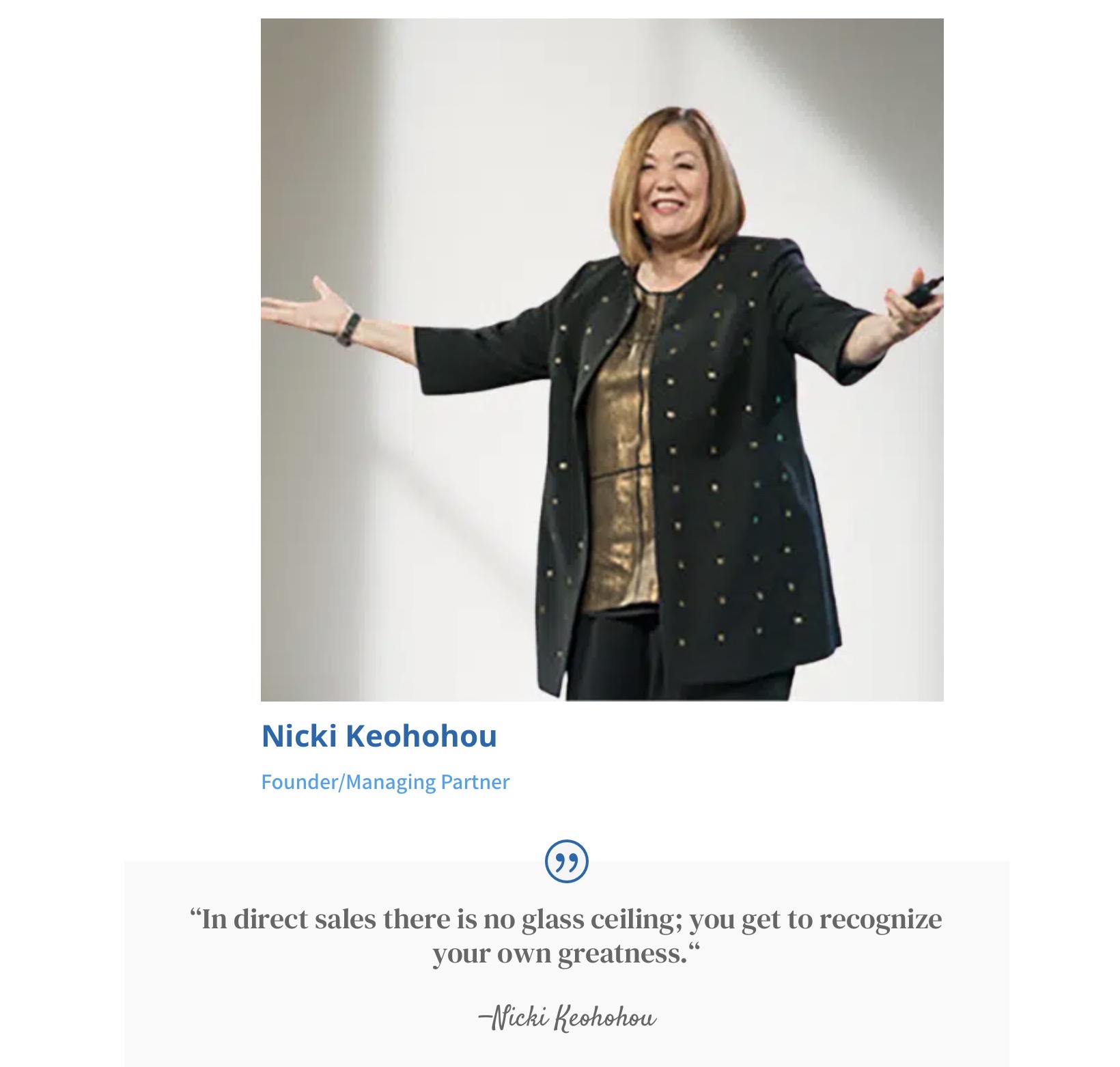 Amelia Fox is the youngest Cadillac director in Mary Kay. She is promoting a virtual class taught by Connie Kitson’s sister and Kristen Sharpe’s aunt Nicki Keohohou. The cost of the class from “coach school” is a mere $999. And it’s for those who are serious about growth!