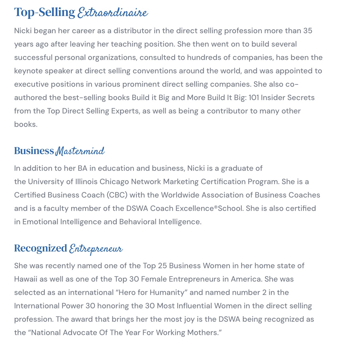 Let me guess: Nicki’s “class” is more of the same MLM rah rah fluff to promote ordering and recruiting with zero advice on running and growing successful retail business.