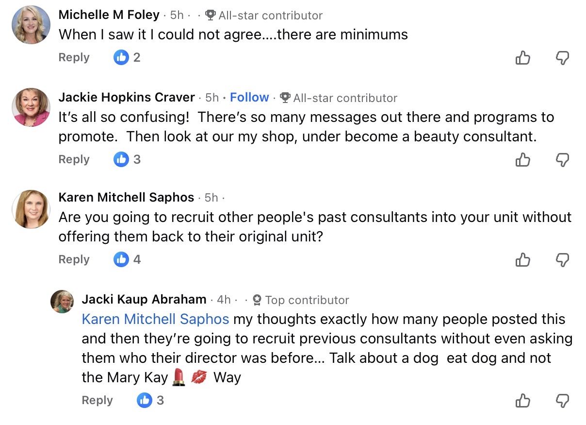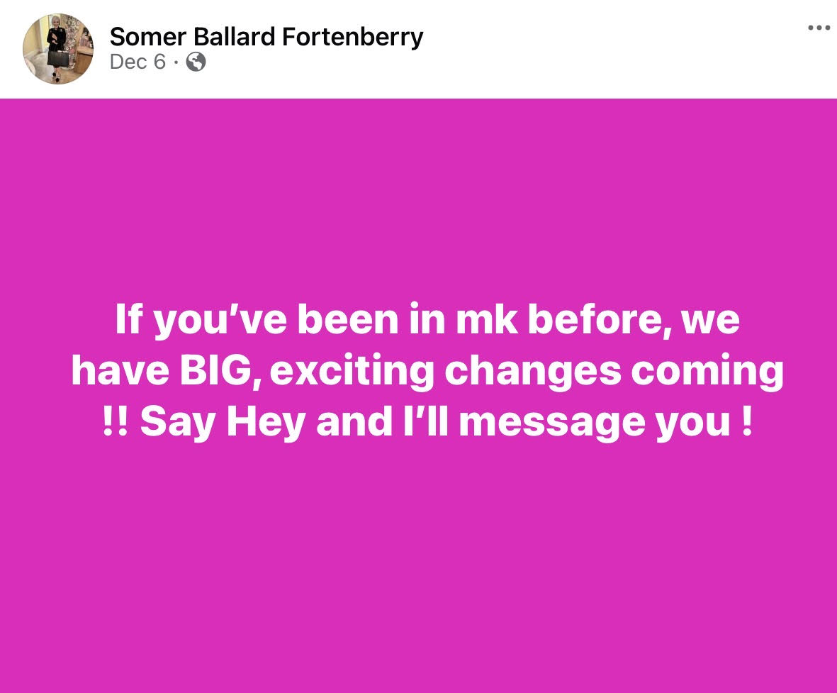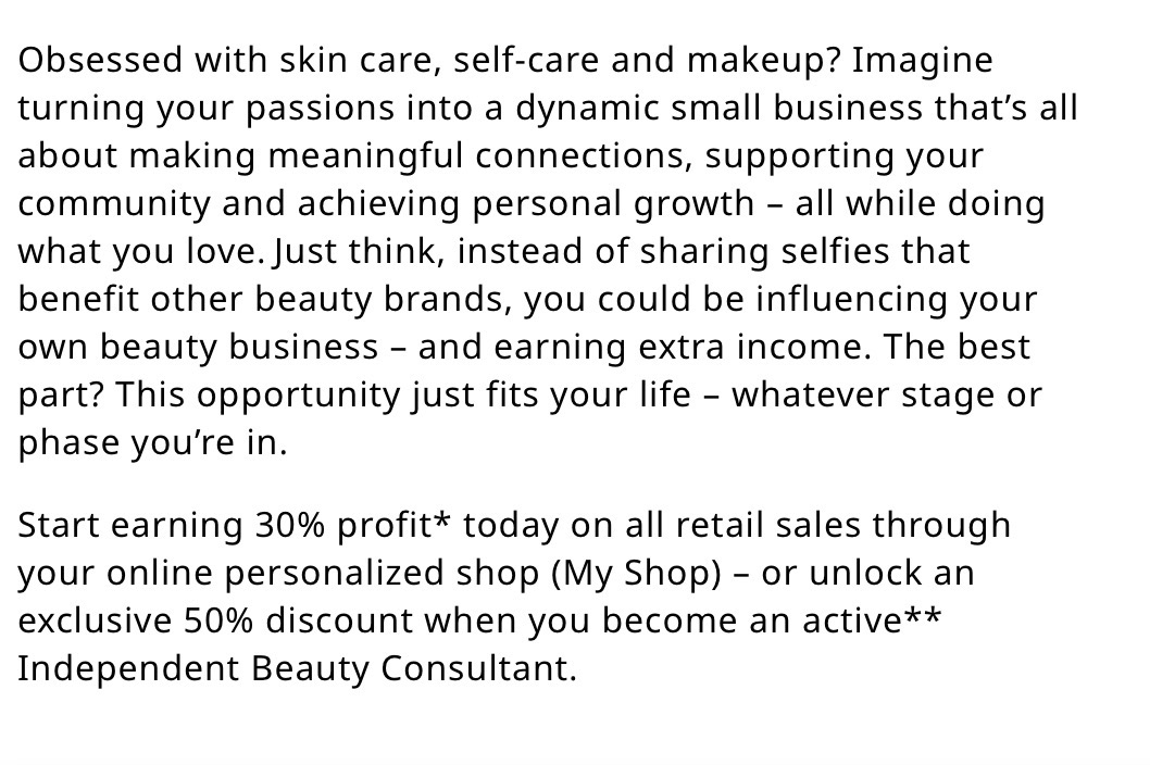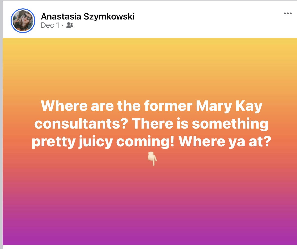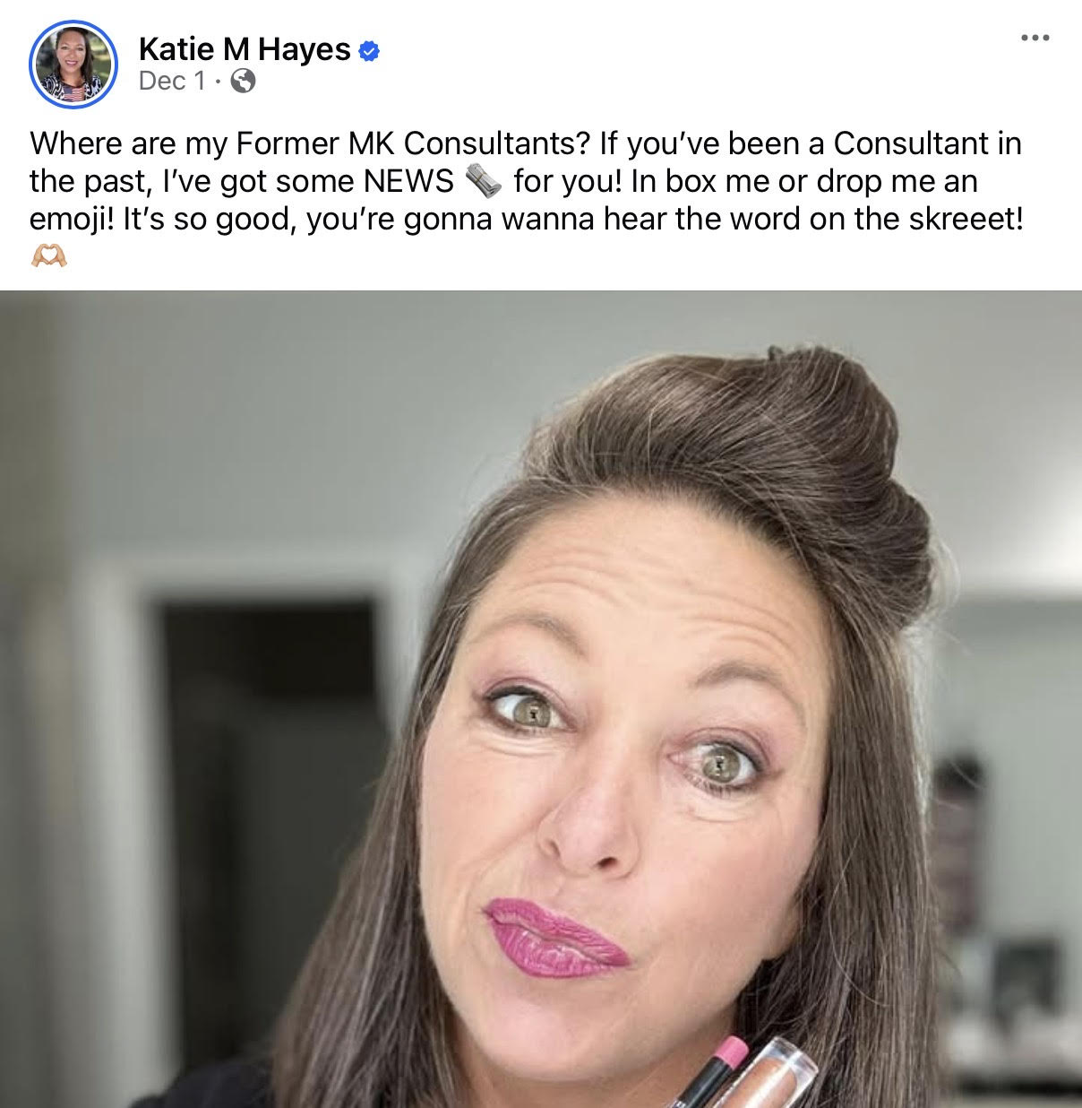 Desperate to receive any type of commission from a downline, they’re marketing this opportunity to anyone and everyone. Mary Kay recruiters started calling out to former consultants. They teased something new to get them interested in coming back. Why? Because a former consultant is easier to recruit than someone who has never been in MK before.