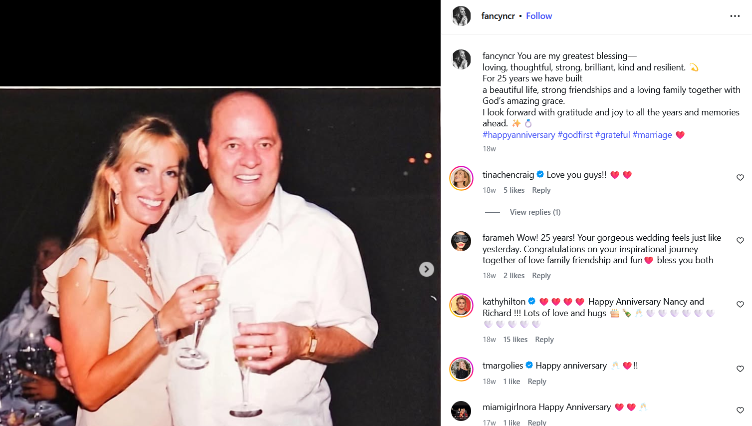Richard’s third wife Nancy is alleged to be behind all of Richard’s money moves. They’ve been married for more than 25 years according to this August post on Instagram: