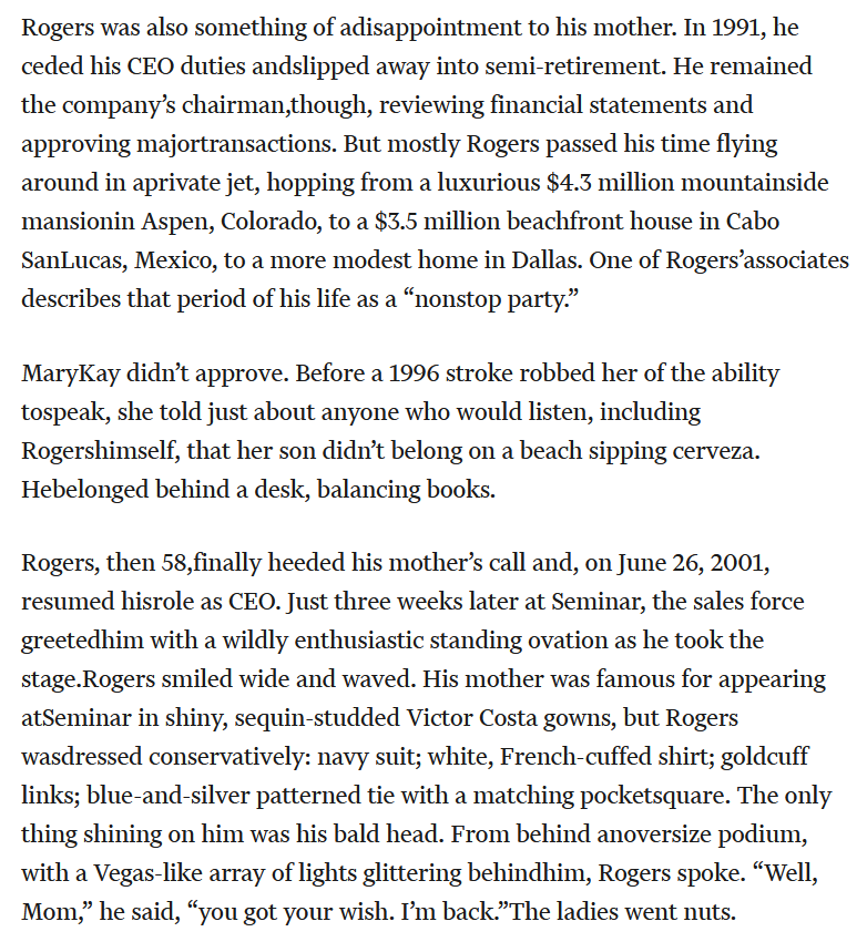 Mary Kay named Richard Rogers the CEO of Mary Kay Inc. in 1987. He didn’t necessarily do a great job, but the company grew anyway. From one news story: