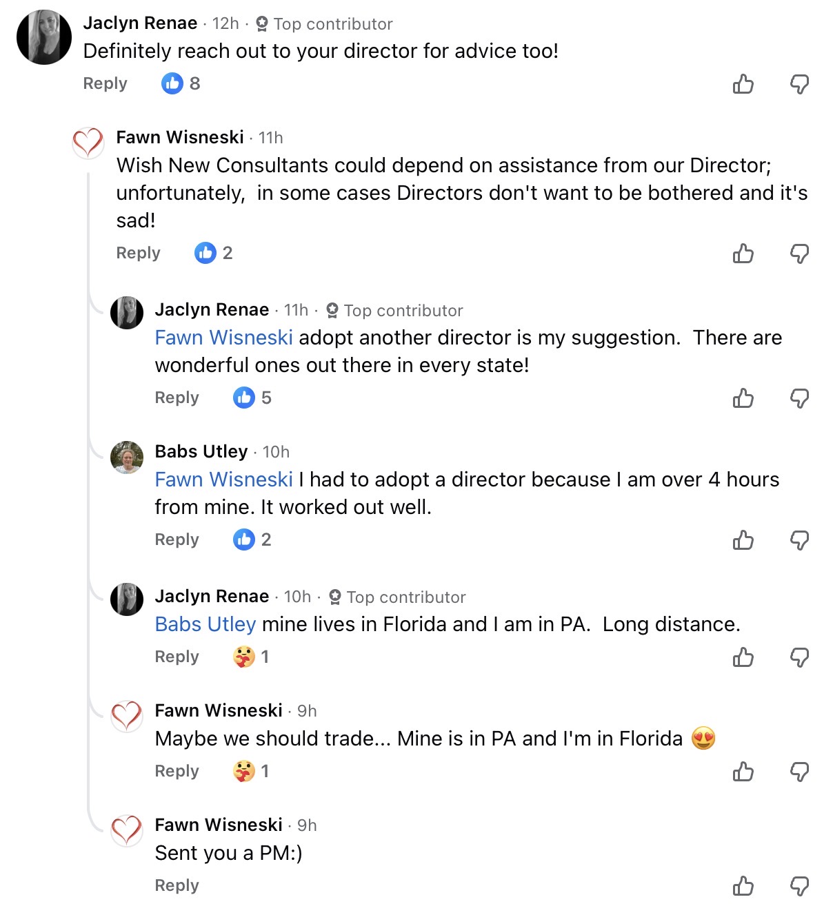 Racquel Kalm jumps in to thank everyone for the ideas and suggestions. Izzy is in her unit. She’d love to have 10 izzys on her team. She showers Izzy with compliments and calls her every week. Do not assume directors are not involved if a consultant asks for help. Izzy’s director is involved y’all.
