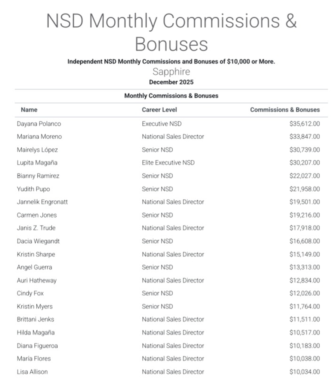 Thanks to one of our friends at Pink Truth, the Mary Kay national sales director commission numbers for December 2025 have arrived!