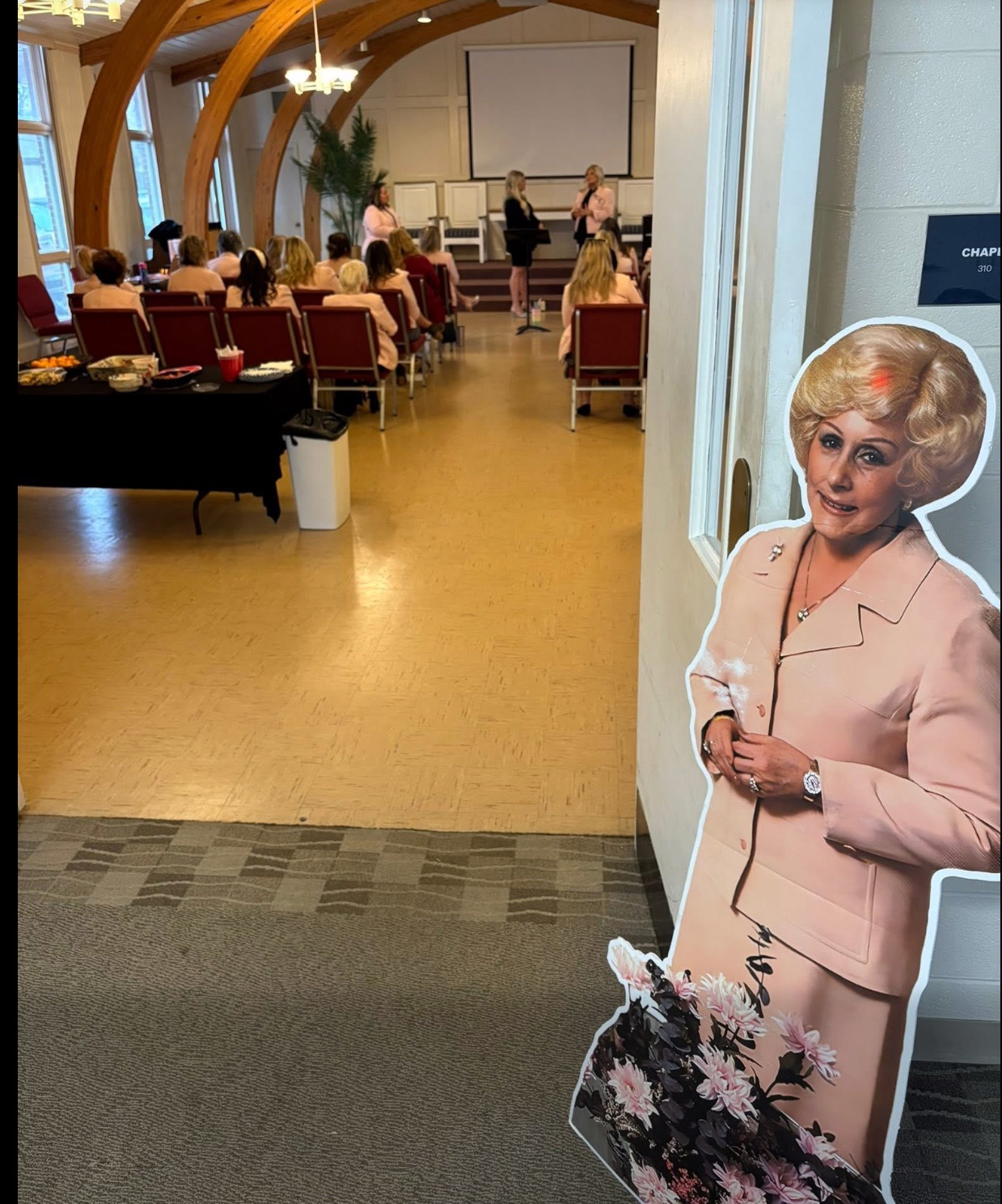 But nothing truly says “cult” like a life-sized cutout of your deceased cult founder at the doorway to your Mary Kay event.