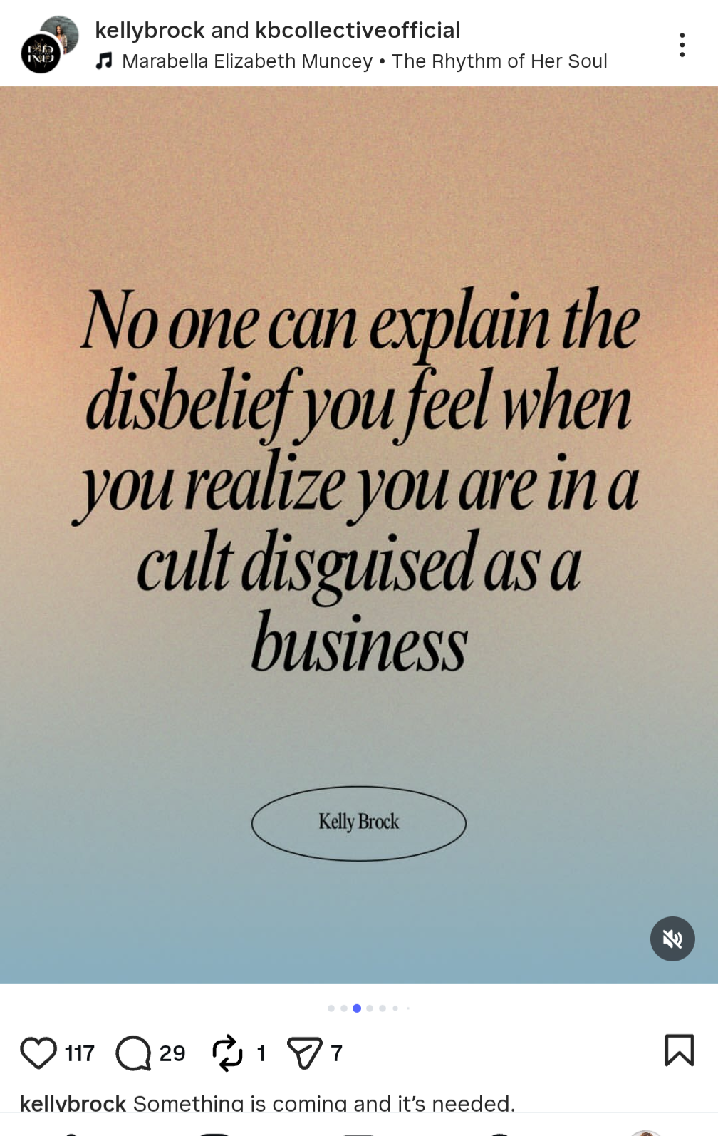 Kelly Brock is an infamous former top director turned “life coach,” who has been peddling her podcast, retreats, masterminds, and coaching services since leaving Mary Kay in 2020. She made a very interesting post on Instagram recently.