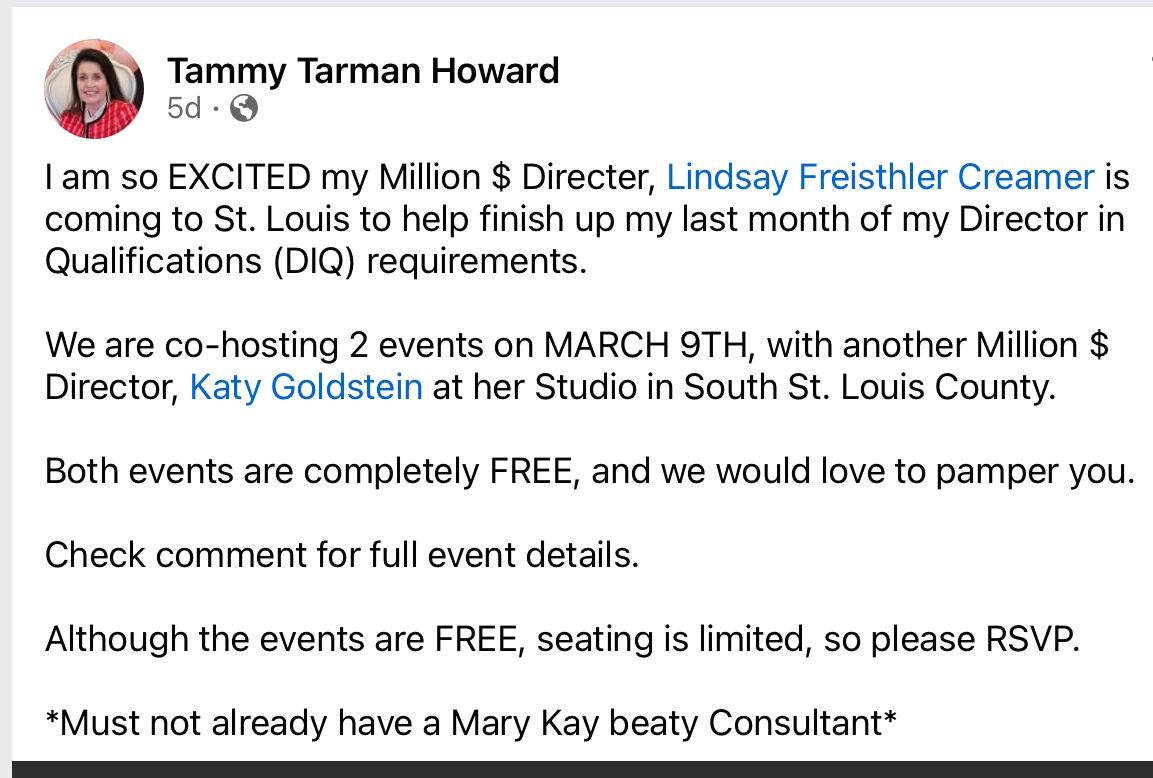 Ms. Creamer has been a “million dollar sales director” 3 times, but can’t seem to get to the elusive number of directors to get to nsd. So she just has to WORK HARDER!