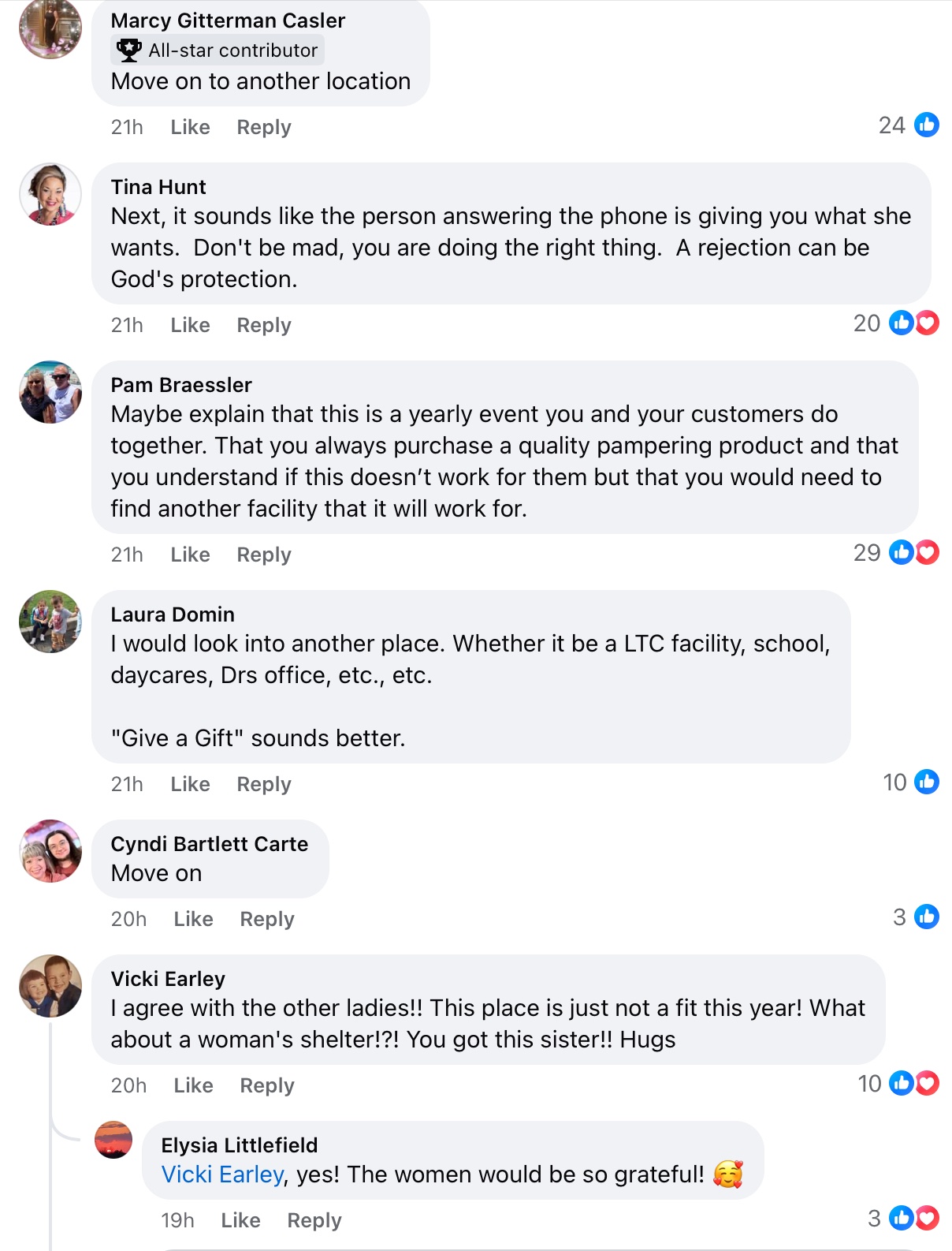 Consultants are always asking for ideas for their program on the various Facebook groups. These screenshots are from November 2024 but still illustrate how desperate and tacky these programs are.
