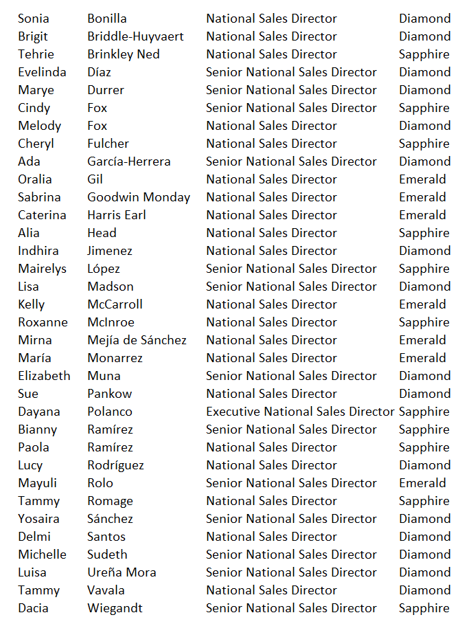 But massive changes (i.e. cost-cutting measures) at Mary Kay led to a whole bunch of nsds quitting as of January 1, 2026. A total of 34 nsds are no longer with the company, as evidenced by retirement announcements or the fact that they aren’t on the Mary Kay website anymore. Our friend Parsons Green was kind enough to put together a list of the national sales directors who are gone: