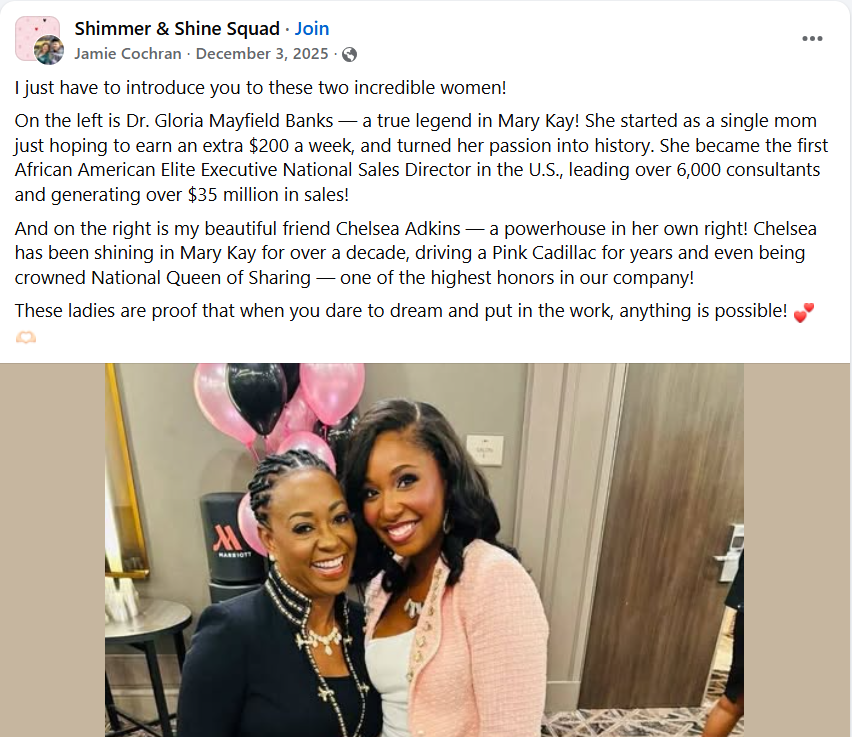 Let’s just remember: The only way someone makes millions in Mary Kay is for loads of women below her in the pyramid to LOSE millions. It’s not a business. It’s a wealth transfer scheme disguised as a business.