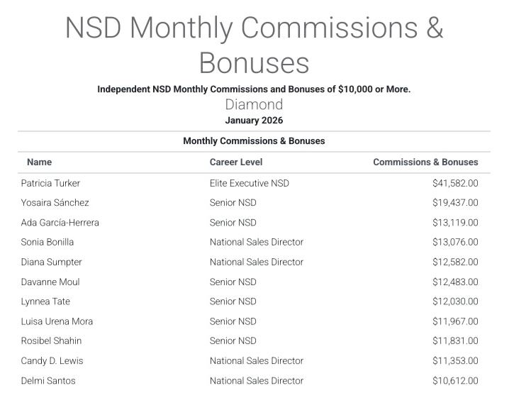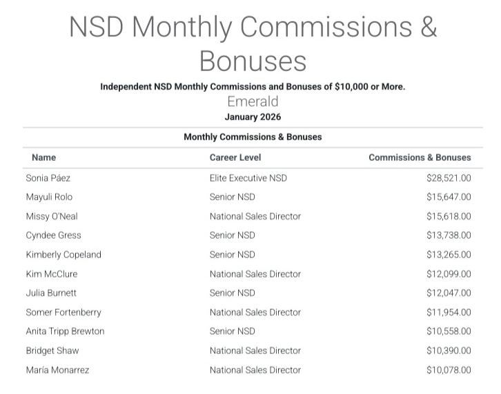 As of January 2026, there were approximately 106 nsds left (possibly even fewer than that). But let’s work with the number 106. As you see below, only 33 national sales directors made $10,000 or more for the month. That’s 31% of the total, meaning 69% of nsds bring in less than $10k per month. Ouch.